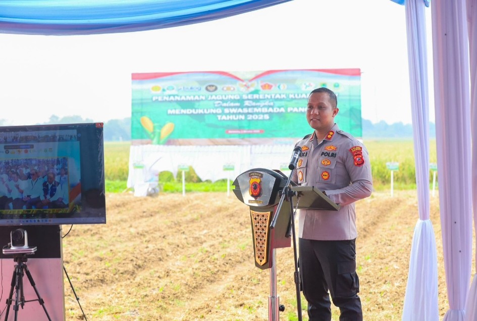 Kapolres Karawang, AKBP Fiki Novian Ardiansyah, menghadiri kegiatan Penanaman Jagung Serentak Kuartal IV dalam rangka mendukung swasembada pangan tahun 2025. Kegiatan ini dilaksanakan secara virtual melalui Zoom Meeting bersama Wakil Presiden Republik Indonesia.